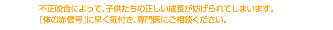 顎顔面矯正治療法によって健全な骨の成長を促し、「体の赤信号」を改善します。